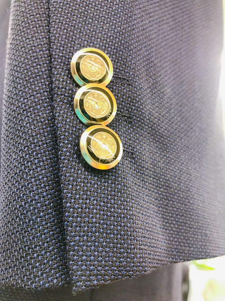 ボタンは金と銀で迷われましたが、金は目立ち過ぎて抵抗があるとの事で銀ボタンをチョイスする事で落ち着いた印象となりました。