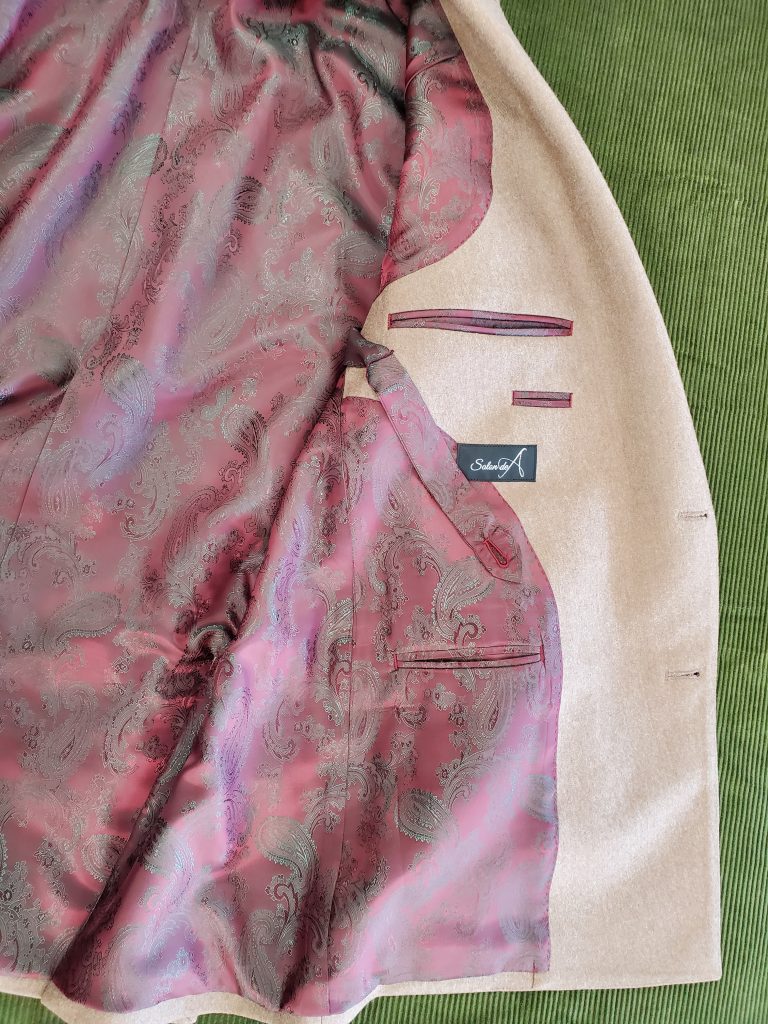 しっかりと6ツ釦のダブルらしい重厚感を太めのラペルで更に出しつつも、