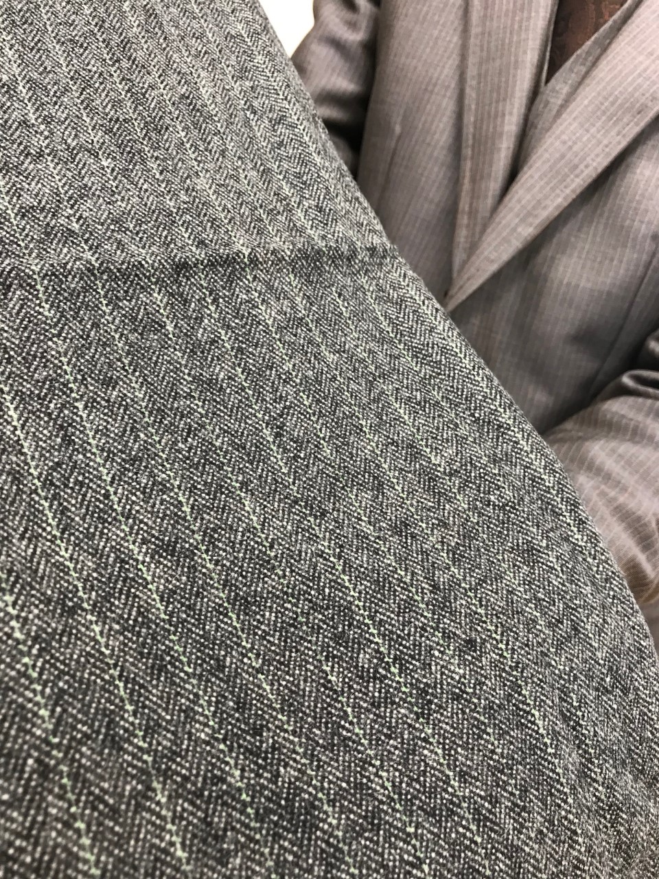 ヘリンボーン柄の中にわずかに浮き上がる”グリーン”の糸が