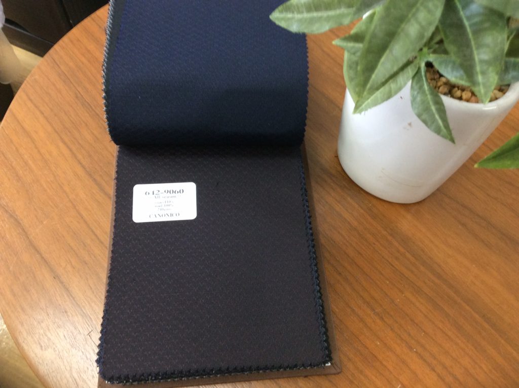 最近では、スーツ生地でも小紋柄、織柄なども出ています。