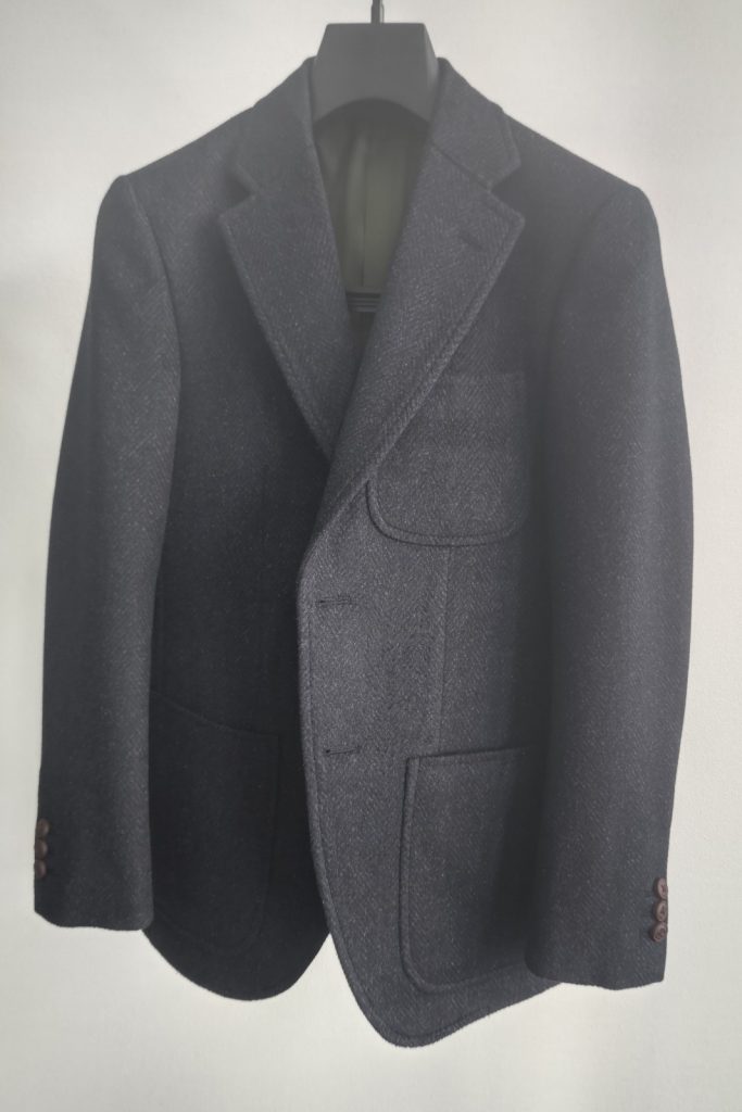 ネイビー系のへリンボンジャケットでポケットはパッチにしました。