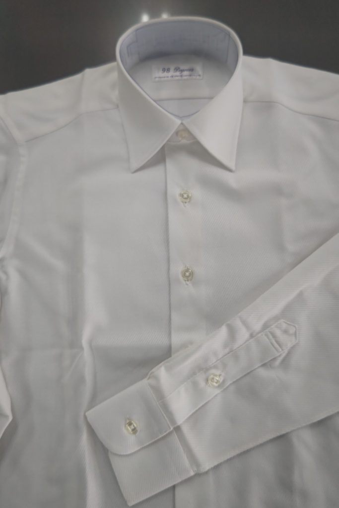 今回は綿100%の織柄のホワイト色のシャツを作りました。