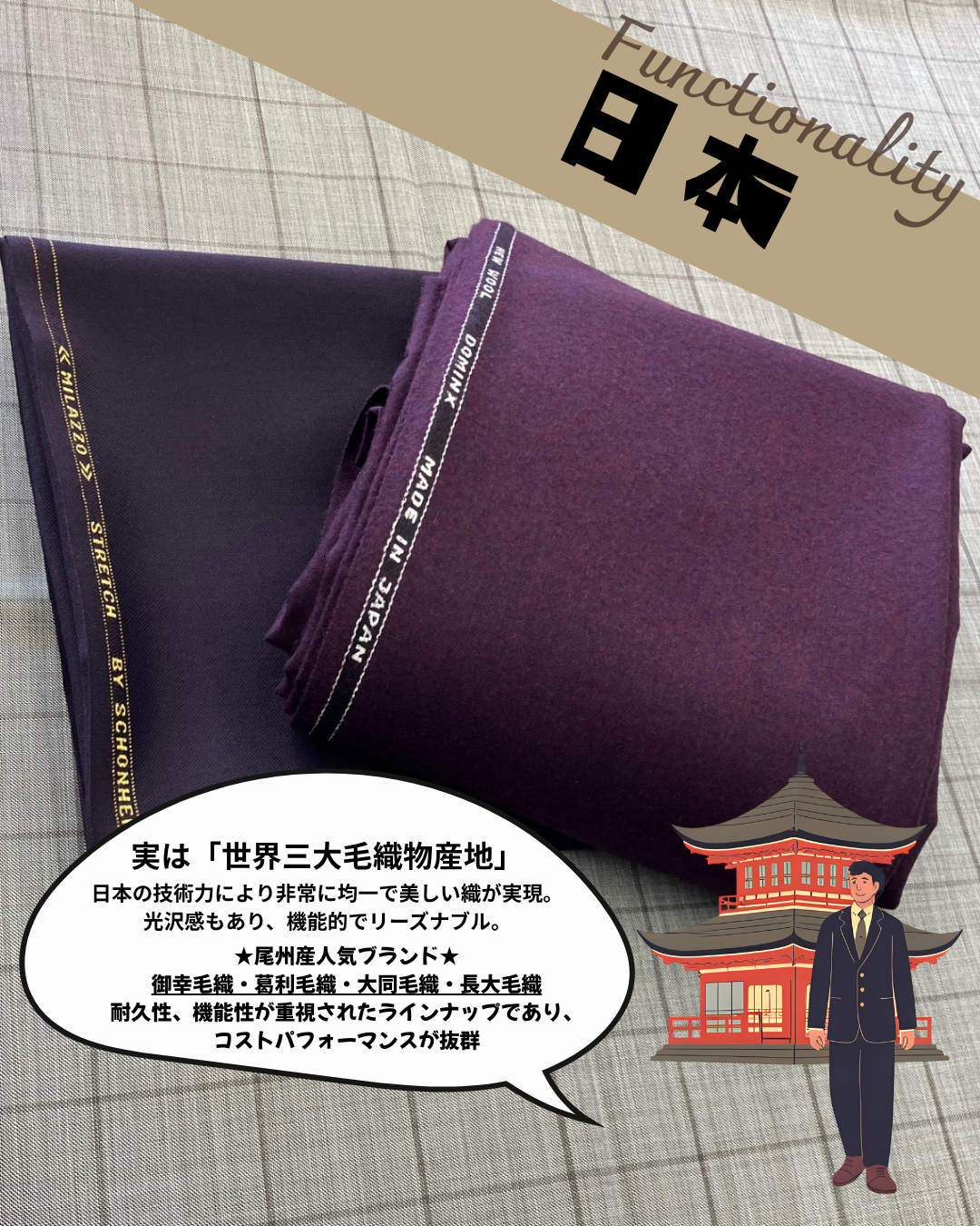 そこで、今回は産地ごとに特徴が異なる生地の事をご紹介します。