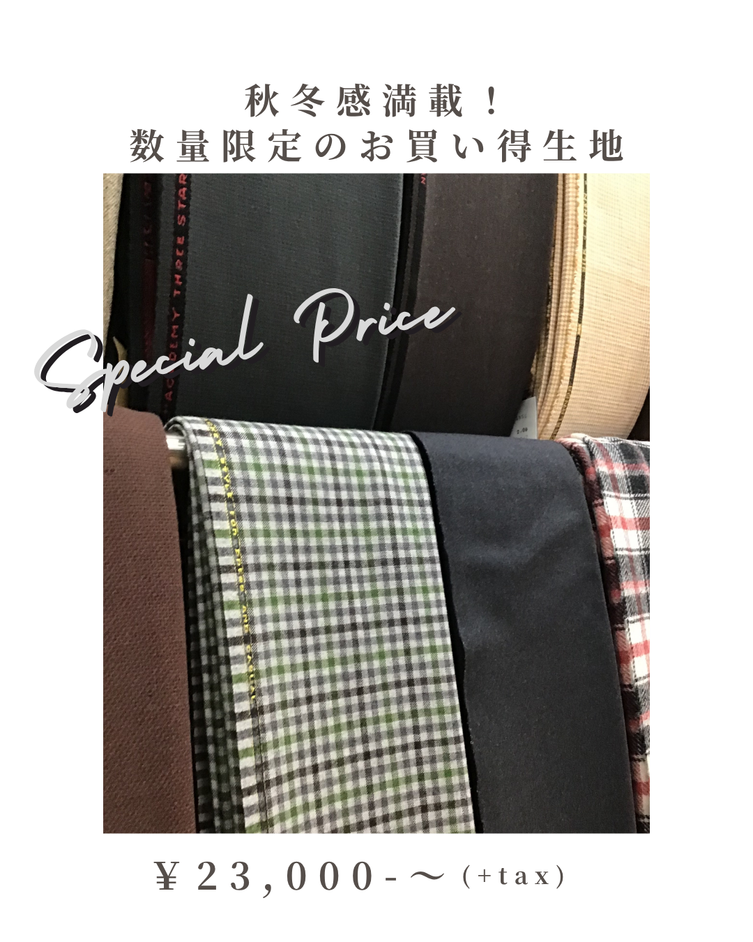 秋冬らしいチェック柄、ツイードなど様々なバリエーションの生地をご用意してます。